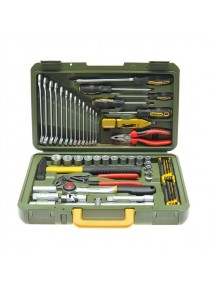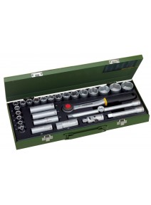 - Chei tubulare de la 4 la 34mm, chei tubulare pentru bujii de 16 si 21mm, capetele de surubelnita Drepte,Phillips,Torx si Imbus, chei imbus in "L" de 1.25-1.5-2.0-2.5 si 3mm, doua prelungitoare lungi cu adaptor "T" si doua prelungitoare scurte, un maner tip surubelnita cu patrat de antrenare de 1/4", doua cuplaje cardanice, cheie cu clichet de 1/2" si 1/4".