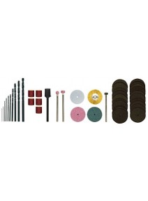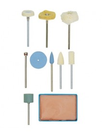 - Compus din : 3 pasle ( cilindru, con, disc ), 3 din silicon-carbid ( glont, cilindru, disc ), disc din bumbac, pasta de slefuit si un arbore de fixare de diametru 2,35mm.
